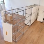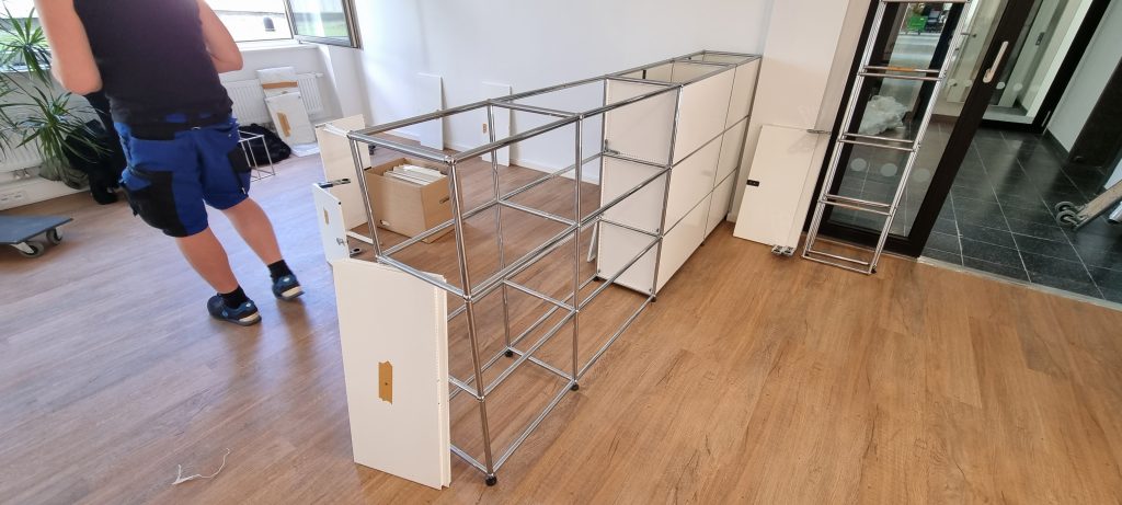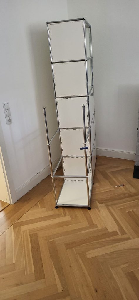 Das USM Haller Möbelsystem steht für funktionales Design und Flexibilität. Die Demontage und erneute Montage können jedoch ohne Spezialwerkzeug kompliziert sein.